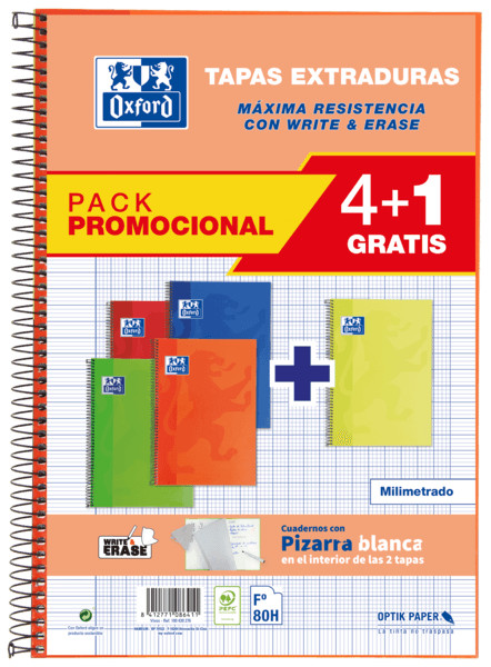 El Oxford School Classic Write&Erase Pack 4+1 Fº es un cuaderno de espiral con tapa extradura, ideal para estudiantes de 4 años en adelante. Cuenta con milimetrado con margen en sus 80 hojas, las cuales vienen en colores vivos que hacen que el cuaderno sea atractivo y fácil de identificar.